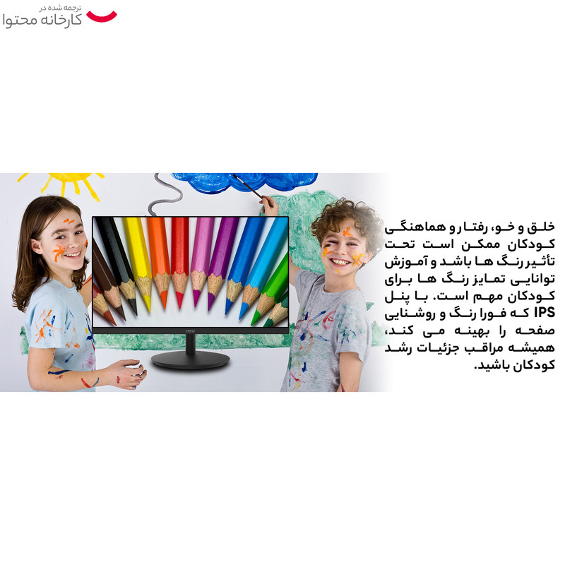 MSI PRO MP271P Monitor 27 Inch محصولی از برند «ام اس آی» (MSI) است. این مانیتور به یک پنل IPS با نور پسزمینه LED مجهز شده که میتواند تصویری با رزولوشن 1080×1920 پیکسل تولید کند. نسبت تصویر در این مانیتور 27 اینچی ام اس آی 16:7 است که تصویر عریضی بهشمار میآید. استفاده از پنل IPS باعث شده تا سرعت پاسخگویی مانتیور به 5 میلیثانیه برسد و برای بازیکردن انتخاب نسبتا مناسبی باشد. ورودیهای تصویر مانیتور PRO MP271P شامل یک پورت VGA و یک پورت HDMI هستند و اتصال انواع کارتهای گرافیکی به این پورتها بهسادگی امکانپذیر است. صفحهنمایش این مانیتور مات بوده و باعث شده نور به چشم شما بازتاب نشود و برای کارهای طراحی و ادیت مناسب باشد. نرخ بروزرسانی تصویر مانیتور « PRO MP271P» 75 هرتز است و برای بازی کردن چندان مناسب نبوده و با مقداری تاخیر بازی را پخش میکند. گفتنی است منبع تغذیه مانیتور « PRO MP271P» آداپتور بوده و Anti-glare است.