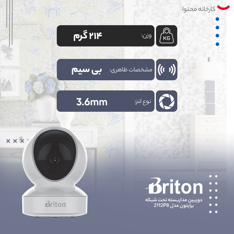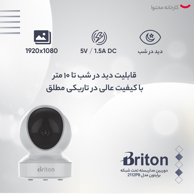 دوربین وایفای Iot برایتون با قابلیتهای ویژه و منحصر به فرد یکی از پرکاربردترین دوربینهای موجود برای استفاده در منازل، فروشگاهها، دفترکار و ... است.محصولات مدار بسته برایتون با دارا بودن سرور انتقال تصاویر در داخل کشور، بیشترین سرعت انتقال تصاویر را به کاربر میدهند.با توجه به اینکه تصاویر این نوع دوربینها عمدتا با اینترنت و بر روی گوشی همراه مشاهده میشود، همین قابلیت؛ دوربین را به محصولی منحصر به فرد و بیرقیب، در ایران تبدیل کرده است. مکالمه و گفت و شنود دو طرفه، این امکان را به کاربر می دهد که با افراد حاضر در محل صحبت کند و یا صدای محیط را بشنوند.یکی دیگر از بهترین امکانات دوربین وایفای، امکان چرخاندن دوربین از راه دور توسط گوشی همراه است.در واقع کاربر در هر جا و هر نقطهای که باشد با کلیک کردن بر روی گوشی همراه خود میتواند به راحتی جهت دوربین را تغییر دهد و نمای 360 درجه محل را ملاحظه کند. دوربینهای وایفای برایتون تنها دوربینهایی هستند که راهنمای گویای فارسی دارند و این راهنمای گویا به زبان فارسی، باعث می شود کاربر به راحتی امکان راه اندازی دوربین را در کمتر از 2 دقیقه داشته باشد. تنها دوربین موجود در بازار است که 2 سال گارانتی و 10 سال خدمات پس از فروش شرکت پویش رایان داتیس را دارد. دوربین وایفای برایتون امکان پشتیبانی تا 128 گیگابایت را دارد. تا 10 متر دید در شب با کیفیت عالی در تاریکی مطلق را داراست . به طور کلی،این دوربین میتواند با تشخیص حرکت به صورت خودکار اقدام به ضبط تصاویر و در لحظه برای تلفن همراه شما آلارم ارسال کند. دوربین 2112P8 چه در شب و چه در روز، کیفیت تصویری FullHD با رزولوشن 1920x1080 را به شما ارائه می دهد و در تاریکی مطلق، می توانید تا 10 متر پوشش تصویری داشته باشید. با استفاده از اپلیکیشن گوشی علاوه بر کنترل چرخش دوربین، می توانید یک تماس دو طرفه را با محل تحت نظارت خود برقرار کرده و نکات مورد نیاز را گوشزد کنید، یا با دلبندتان گفتگو کنید، یا زمان صرف دارو را به سالمندی که در خانه دارید یادآوری کنید و یا با گفتن یک دستور حیوان خانگی تان را از انجام کاری منصرف کنید. زاویه دید مستقیم این دوربین 75 درجه است؛ اما توانایی چرخش 0 تا 355 درجه به صورت افقی و 10 تا 85 درجه به صورت عمودی است.