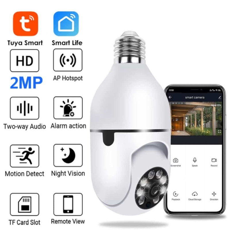 نصب دوربین یکی از مشکلات مشتریانمان بوده است که ما برای صحولت در نصب دوربین های شما مشتریان به وسیله یک سرپیچ لامپ بتوانید دوربین خود را روشن نموده و از امکانات آن استفاده کنید. تصویر و چرخش دوربین لامپی تصویر دوربین لامپی چرخشی گردان از کیفیت Full-HD-1080 برخوردار است با لنز دوربین 2 مگاپیکسل که شما می توانید تا فاصله 25 متری را در روز به صورت واضح تشخیص چهره داشته باشید و در شب هم بین 15 الی 20 متر تصویر واضحی به شما می دهد. چرخش این دوربین هم به صورت 90 درجه عمودی و 360 درجه به صورت افقی می باشدکه شما می توانید از راه دور به وسیله نرم افزار موبایل و لبتاب به راحتی از هر جای دنیا دوربین مداربسته وایرلس خود را هدایت کنید تا نظارت بهتری بر محیط داشته باشید.