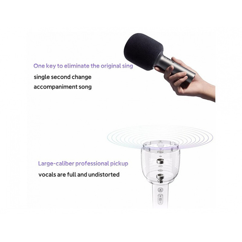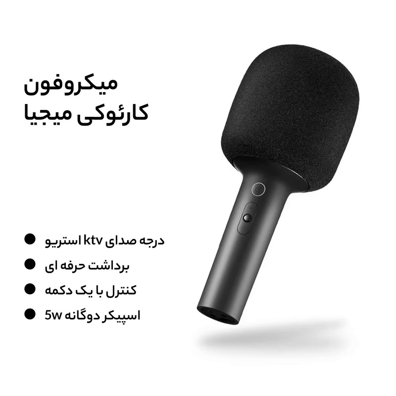 میکروفون بیسیم MIJIA Karaoke از برند شیائومی، مدل XMKGMKF01YM است که به صورت حرفه ای طراحی شده است ،برای استفاده در استودیو و هم سرگرمی انتخاب بسیارخوبیست . یک پایه دارد و توسط کابل typeC شارژ میشود ، پورت های دیگری مثل اتصال به هدفون یا موبایل در قسمت زیر دستگاه تعبیه شده. البته سازگار با چندین پلتفرم هست و توسط بلوتوث نسخه 5.1 به راحتی به تلویزیون یا وسایل دیجیتالی که مدنظر دارین متصل میشود. دکمه کم و زیاد کردن صدا و پاور روی دسته قرار گرفته و تنها با یک دکمه عمل میکنه، دارای 9 افکت صدایی سرگرم کننده است. DSP chip هم دارد که مانند کارت صدا عمل میکند و توسط دستگاه متصل به این میکروفون میتوانید صدایتان رو ارسال کنید . باتری 2500 میلی آمپر ساعت که در این دستگاه قرار گرفته به شما امکان استفاده تا 7ساعت رو میدهد.